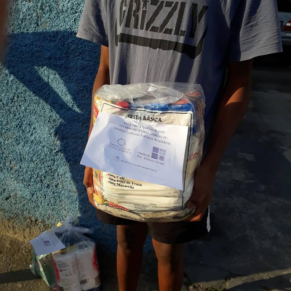 Desde o início da pandemia, com recursos do Fundo de Apoio às Comunidades Empobrecidas do Instituto Vilson Groh – IVG e de vários outros doadores parceiros, sejam empresas, instituições ou pessoas físicas, o CCEA distribui cestas de alimentos e produtos de higiene e limpeza para as famílias dos jovens que mais necessitam. Através da abordagem do serviço social que atualiza um cadastro semanalmente, procura-se contribuir para a garantia da segurança alimentar desses núcleos familiares, bem como manter os vínculos com os jovens e apoiar outras demandas quando possível. Este trabalho diferencia-se pela distribuição regional em amplo território, pois os jovens que frequentavam os projetos habituais residem em vários pontos da Grande Florianópolis, desde o Norte da Ilha, até Biguaçu, Palhoça e Governador Celso Ramos.