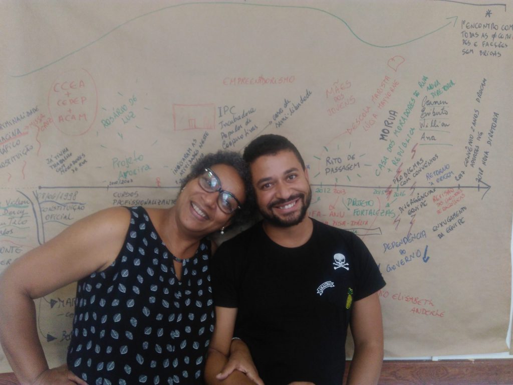 Em meados dos anos 1990, após a ocorrência de uma chacina envolvendo oito jovens, cinco deles vindo a óbito, um grupo de mães e avós – mulheres negras em sua maioria – no intuito de encontrar alternativas para que seus filhos e filhas, netos e netas, não ficassem entregues aos apelos da criminalidade, especialmente ao tráfico e à prostituição, iniciaram um trabalho de “cuidado e atenção” aos adolescentes e jovens em horários alternativos à escola. Primeiramente, trataram de ofertar alimento, reforço escolar, aula de artesanato, teatro e uma boa companhia. Em seguida, começaram a procurar parcerias para buscar, “na cidade”, vagas de trabalho para os jovens do Morro. Assim começou o trabalho com as pessoas que a sociedade coloca mais à margem para, com elas, construir possibilidades de inserção social e garantia de direitos.